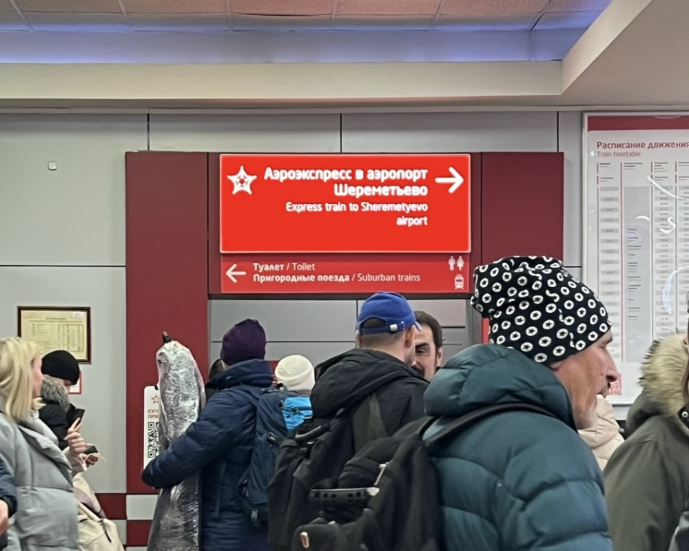 В зале ожидания «Аэроэкспресса» на Белорусском вокзале в Москве.
